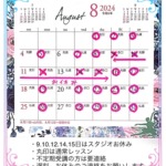 【8月の予定】9.10.12.14.15日はスタジオ休み。猛暑の中、レッスンにお越しのさいはくれぐれもお気を付けください。